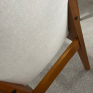 Em madeira, com assento e encosto no linho + espuma hiper confortável.