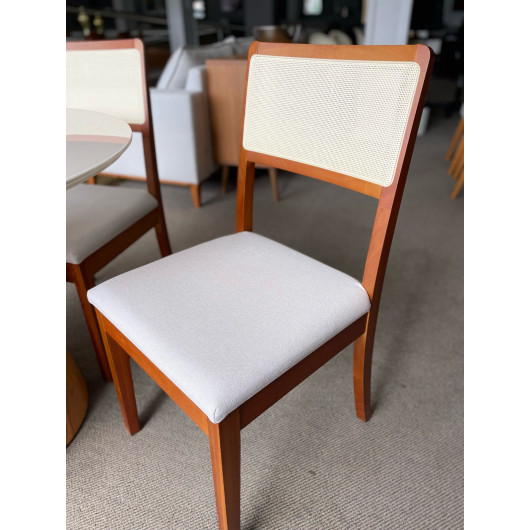 Já as cadeiras têm que ser confortável e de alta qualidade. Esse modelo com design telinha e laminado, é uma tendência forte na decoração atual.