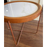 Com um design clássico redondo possui o tampo em Madeira Maciça e detalhes em porcelana, é ideal para preencher o espaço maiores com bom gosto e graça.