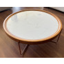 Com um design clássico redondo possui o tampo em Madeira Maciça e detalhes em porcelana, é ideal para preencher o espaço maiores com bom gosto e graça.