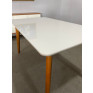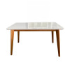 A mesa de jantar possui estrutura em acabamento de madeira, com base em formato moderno faz o encaixe perfeito das cadeiras.