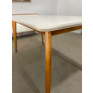 Possui tampo com vidro aplicado com bodas em laca off white.