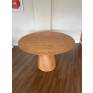 Arredondada, com base trabalhada na cor madeira cinamomo com um acabamento com melhor qualidade.