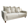 O seu tecido é de linho garante a sofisticação, beleza e resistência para este móvel. E as almofadas são soltas para facilitar a limpeza e conforto.