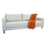 O seu tecido é de linho garante a sofisticação, beleza e resistência para este móvel. E as almofadas são soltas para facilitar a limpeza e conforto.
