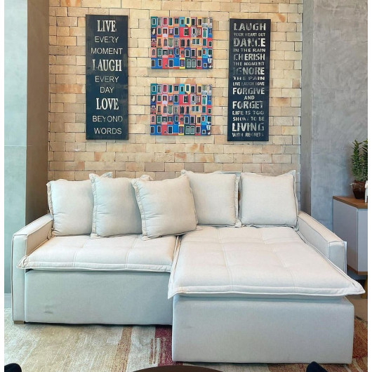 Sua cor clara em linho deixa o ambiente sofisticado e um toque de modernidade da sua sala de estar. Acompanha as almofadas soltas.