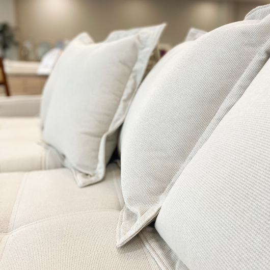 Sua cor clara em linho deixa o ambiente sofisticado e um toque de modernidade da sua sala de estar. Acompanha as almofadas soltas.